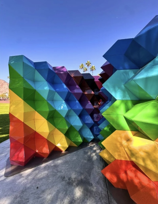 Now that the weather has finally cooled (well, aside from last weekend’s odd heatwave!), it’s the perfect time to explore some of the new art installations popping up across Greater Palm Springs. From a towering spider-like sculpture guarding the Palm Springs Art Museum to a vibrant moving mural that dances along the Fred Waring Bridge in Indio, there’s no shortage of creativity on display. So grab a pumpkin spice latte and get out there — five new works await you below.