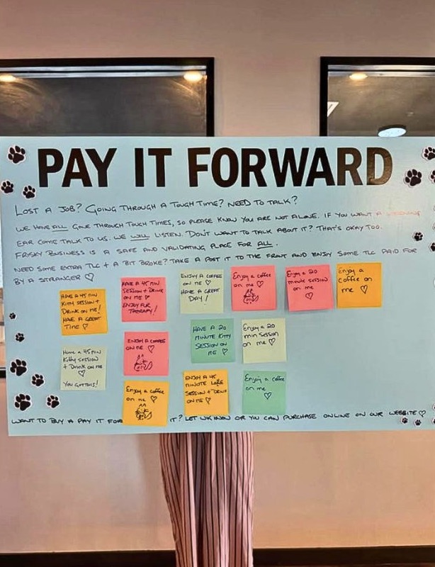 After 20 years in corporate life, something always felt like it was missing — it lacked soul. When I created Frisky Business, I knew I wanted to build something rooted in community, compassion, and service. My motto is: “Serve first, and the money will follow.” That philosophy has guided everything we do, from our Pay-It-Forward wall to our community cat food pantry to becoming a Certified Neurodiverse Workplace.