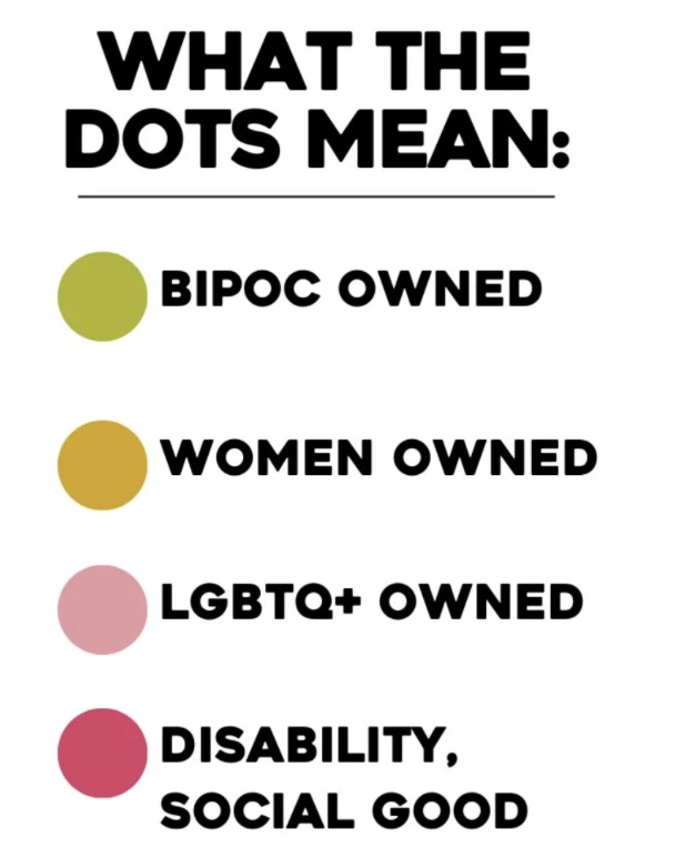 This community has been very supportive of our mission and we are thrilled! Palm Springs Bottle Shop is focused on brands created and led by Women, BIPOC, and LGBTQ+ entrepreneurs and makers. We use a system of dots to color-code every product we sell so that the customer knows who they’re supporting. We also have a “dot” for brands that benefit/hire people with disabilities and brands that are generally doing Social Good.