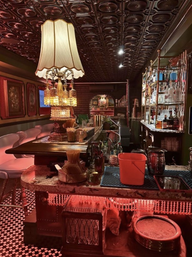 Following some turbulent years that included a “suspicious” fire, a contentious eviction, and a lengthy closure, Palm Desert’s historic Red Barn has been completely revitalized by new owners Cyrus and Marcie Tahmasebi. Exhaustively reimagined, the bar now dazzles with rich colors, luxe textures, and vintage treasures at every turn — think lamps from Liberace’s estate, art from the Autry Museum, and flocked wallpaper. Once a self-proclaimed “five-star dive,” it’s now stylish, upscale, and a true feast for the eyes — with cocktails to match. Be sure not to miss the stunning pink restroom, easily my favorite feature of the entire place!