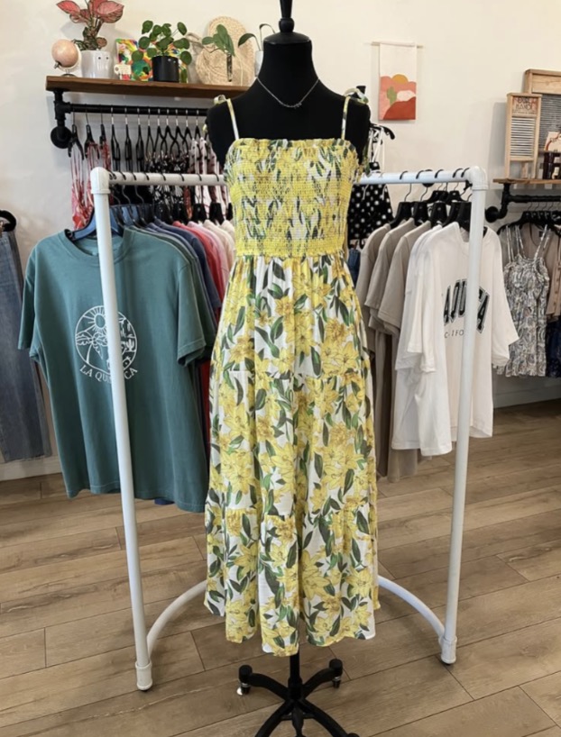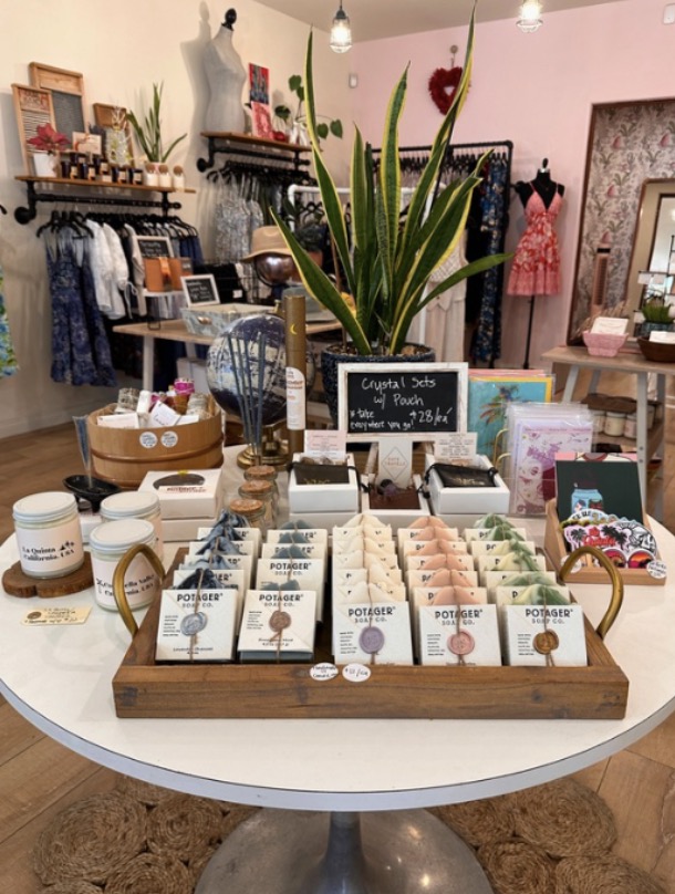 In our heads, we thought Roam.e would be for younger girls, more of a junior customer. Then, when we’d go on the truck and vend at farmers’ markets and fairs, we realized that busy moms were really the ones who needed us. They didn’t have the time to go grocery shopping and then to the mall for clothes. Hence, our assortment grew up a little, providing fashionable and functional clothes for the busy “cool mom.” Back then, we’d focus on athleisure with a sprinkling of printed dresses and casual work attire. Now, being in the desert, I’ve dropped athleisure from our assortment and pumped up the printed dresses and resort wear. Since the majority of our clientele are tourists, I feel that novelty items are what they’re looking for. They can find basic tees and joggers anywhere. When you’re on vacation, you want something different – something that reminds you of where you’ve been. So the assortment is focused more on providing a memory and a feeling that you can’t get back home. Locally made items, merchandise with desert vibes, fun and happy prints. I want the customer to remember us and the feeling they had when they visited La Quinta. It really is such a magical place!