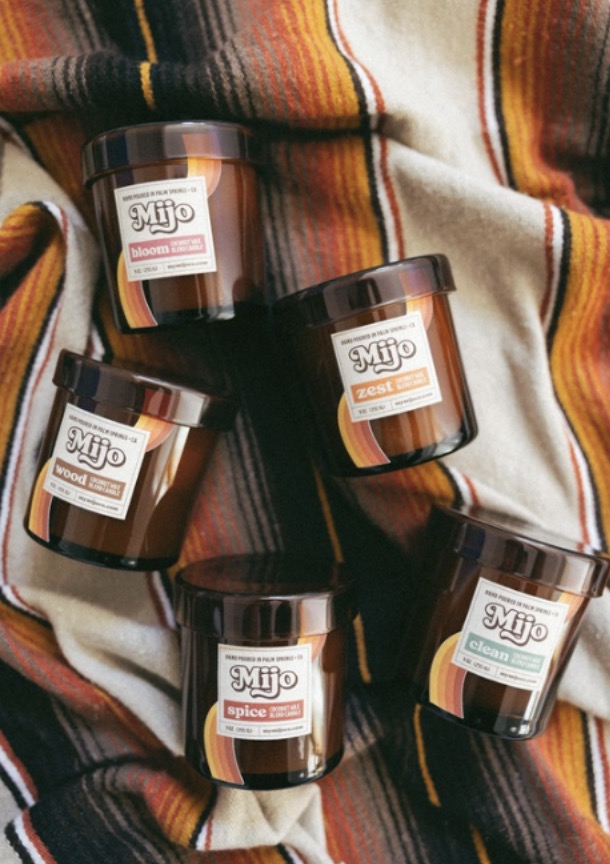 Sunsets Co. candles, Mijo Co. candles (pictured) and J.May Clay earrings are three of my best-selling lines.