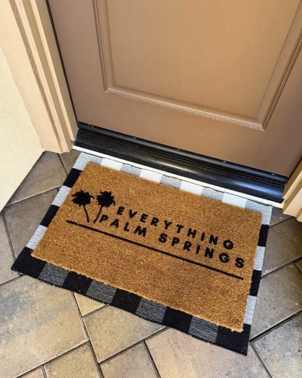 I’m not exactly artistic, but when my friend Cherry, owner of Old Town La Quinta’s Roam.e, invited me to a Craft & Sip Welcome Mat Painting Workshop hosted by Coachella Valley Craft, I jumped at the chance! Offering custom designs, I couldn’t resist creating a doormat featuring a mock-up of my Everything Palm Springs logo. The process was surprisingly simple — I emailed a PDF ahead of time, and my design was waiting for me when I arrived at La Quinta Brewing Co. for the class. Thanks to the seamless instruction, painting it was a breeze, and I couldn’t be happier with how it turned out. It’s the perfect piece to welcome guests at my door.