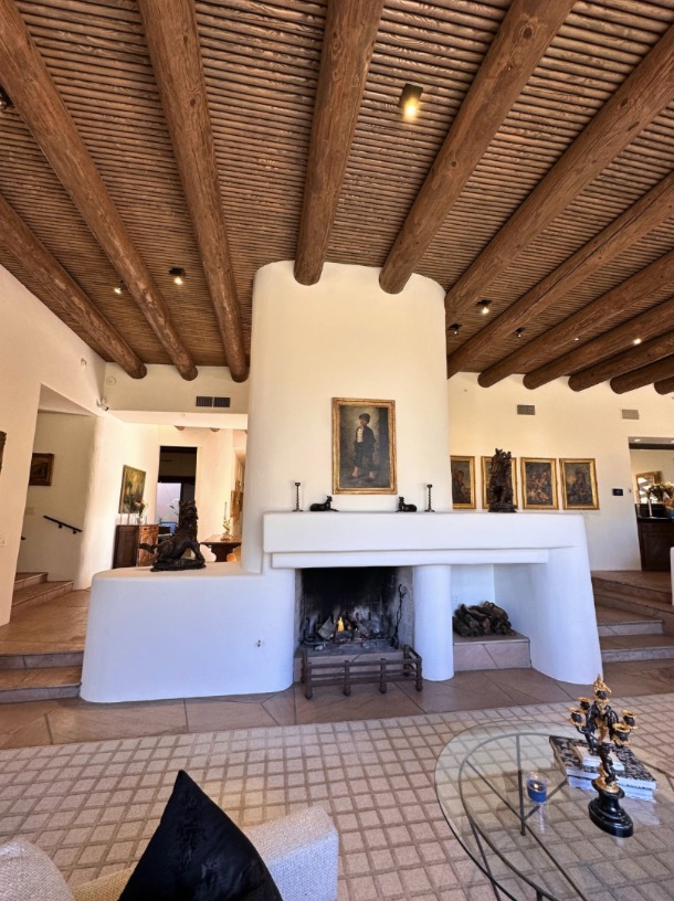 Overflowing with impressive stonework, curving walls, and stylized built-ins, this modern adobe pad is a revelation! Located high atop Andreas Hills, the spectacular views battle the sprawling living room and its stucco fireplace stretching 14 feet to the Viga and Latilla beamed ceilings above for standout feature. But there is plenty more to be had with oversized living spaces, walls of glass, and warm pueblo-inspired design elements throughout. The two-acre lot, complete with a pool, spa and loggia, is equally grand.