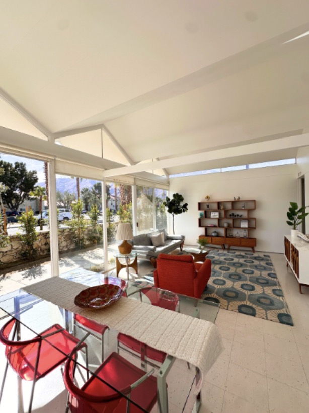 Another Wexler-designed gem, this property, known as the “Royal Singapore,” served as a model home for the Alexander Company’s Green Fairway Estates community upon its completion in 1965 and is considered the acclaimed architect’s most singular creation today. Meticulously updated by its current owner, who uncovered the signature Alexander Cone fireplace still intact, the residence is classic, unique, and timeless. Bonus – the home also boasts its original outrigger-adorned roof as well as sublime views of the Tahquitz Creek golf course.