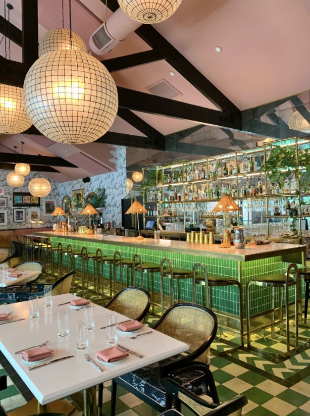 Comprising one of the Valley’s prettiest backdrops, this space is the work of Martyn Lawrence Bullard(the celebrated designer currently revamping Erika Jayne’s house on The Real Housewives of Beverly Hills), who looked to the tennis and racquet clubs of Palm Springs’ heyday for inspiration. Awash in warm pinks and greens, with an emerald-tiled bar serving as a gorgeous focal point, you can’t beat the ambience or stellar Mediterranean fare!