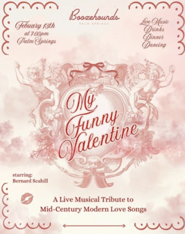 Music more your thing? Head to Boozehounds tonight to enjoy “My Funny Valentine,” a retro-inspired concert honoring the heyday of both Hollywood and Palm Springs hosted by vocalist Bernard Scahill. Taking patrons “back to the beloved era when a night out meant a live band, dinner, drinks, and dancing,” Scahill will be singing bygone romantic hits from Frank Sinatra, Judy Garland, Etta James, and more, sure to get anyone in the loving spirit.
