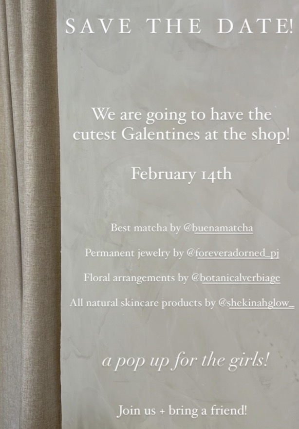 Love is in the air at fave store Kaylie Nicole! While every Friday is a veritable party at the El Paseo clothing boutique, Valentine’s Day will be extra memorable thanks to the shop’s Galentine’s Pop-Up! Stop in from 10 to 5 to enjoy matcha from Buena Matcha, tasty treats from Con Amor, Nina y León, custom blooms from Botanical Verbiage, permanent jewelry from Forever Adorned, and handcrafted skincare products from Shekinah Glow, all while shopping Kaylie Nicole’s beloved staples! (I just snagged this set!)