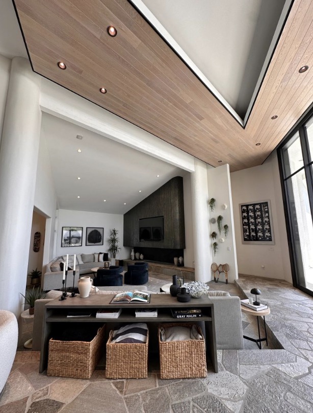This home is a true icon, which is fitting considering it formerly belonged to a rock legend, Whitesnake drummer Tommy Aldridge! Originally fashioned as a stuccoed, glass-bricked 1980s wonderland, the residence was expertly rehabbed by its current owners into the sophisticated stunner it is today. Gone are the bulky columns, ample rock accents, and whitewashed wood once permeating the interior, replaced with grand open living areas, clean lines, and towering glass walls. Commanding the block from a manicured corner lot, the property is an architectural marvel!