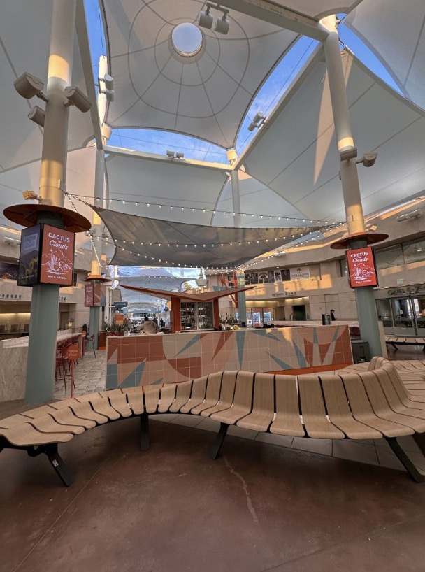 PSP has long been one of the nation’s most charming airports. (That postage-stamp size! That historical vibe!) But it was also seriously lacking in several respects for many years. I am happy to report that is no longer the case thanks to a plethora of new shops & restaurants that have launched on the premises (all of which are open daily!), affording flyers a much more enjoyable travel experience! Along with the aforementioned Cactus to Clouds bar (pictured), Coachella Valley Coffee is especially inviting, with a warm interior, huge selection of pastries, and gorgeous water feature out front.